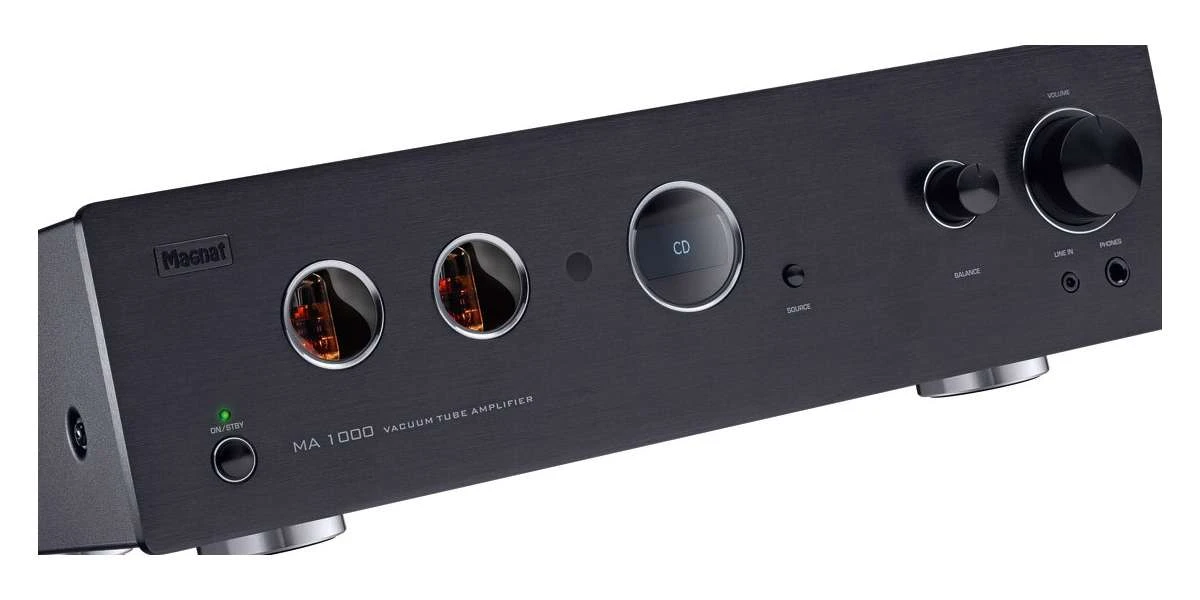 La pièce maîtresse du MA 100 est sans aucun doute le préamplificateur à tubes doté de tubes ECC 82 de fabrication russe haut de gamme qui ont été soumis à un test de burn-in de 60 heures. L’amplificateur haute performance avec transistors de puissance Toshiba monté discrètement, assure la puissance nécessaire. Le MA 1000 dispose ainsi d’une puissance continue de 115 watts par canal.