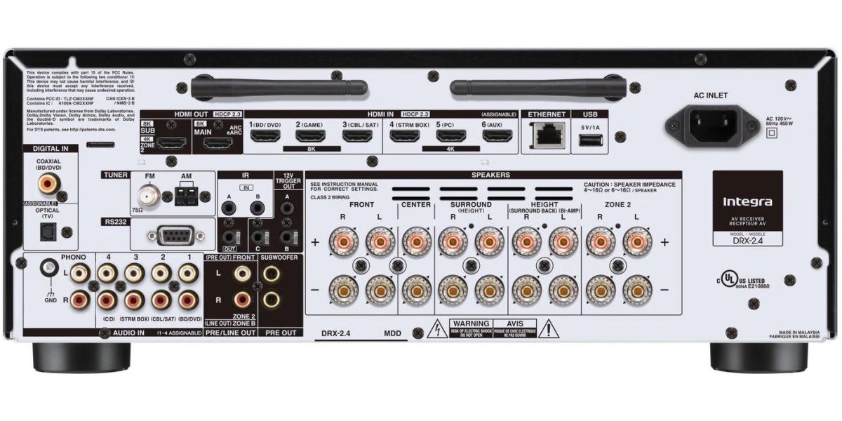 - 6 HDMI inputs, Main Out (eARC), Sub/Zone 2 Out