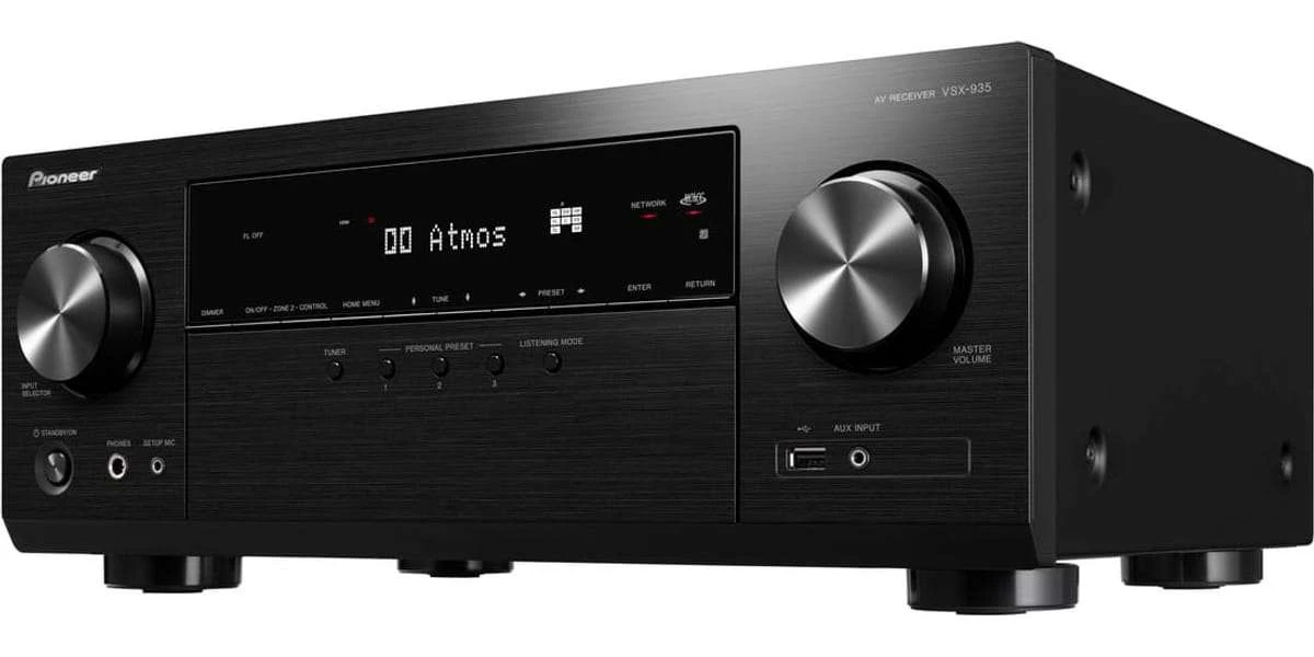 Le VSX-935 fonctionne avec Ok Google, ce qui vous permet de contrôler la lecture de divers services musicaux pris en charge par Chromecast en demandant à un appareil compatible avec Google Assistant de lire, d’arrêter, de sauter ou de monter ou descendre le volume. Cet ampli fonctionne également avec Alexa, de sorte que vous pouvez également utiliser des commandes vocales pour contrôler les services musicaux pris en charge par les appareils intégrés à Alexa. Grâce aux deux commandes vocales, vous pouvez facilement commander et profi ter des services musicaux ou de la radio Internet avec votre voix, sans utiliser de télécommande ou d’application pour smartphone.