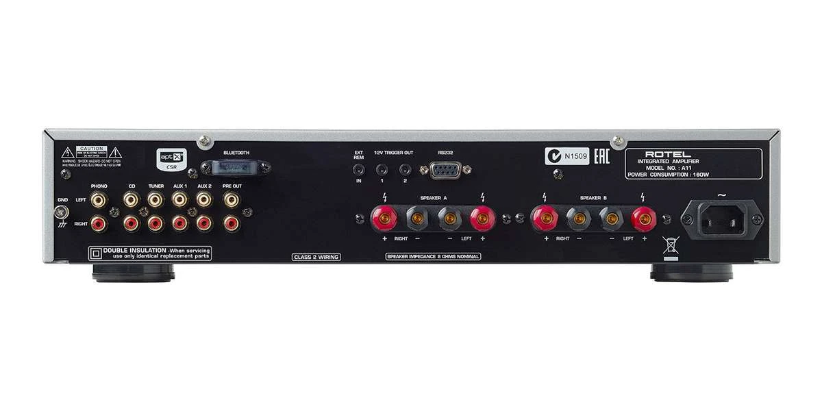 L’amplificateur intégré A11 est basé sur les modèles à succès de la série 14. La puissance de sortie utilise l’amplification Rotel en classe AB de 50 watts par canal sous 8 ohms. Les entrées source comprennent une entrée Phono MM pour les amateurs de vinyle, une connexion Bluetooth en aptX et AAC pour le streaming audio sans fil et 4 entrées analogiques RCA pour une flexibilité ultime. L’écran graphique en face avant et la télécommande IR assurent un contrôle simplifié et sans effort de votre système audio.
