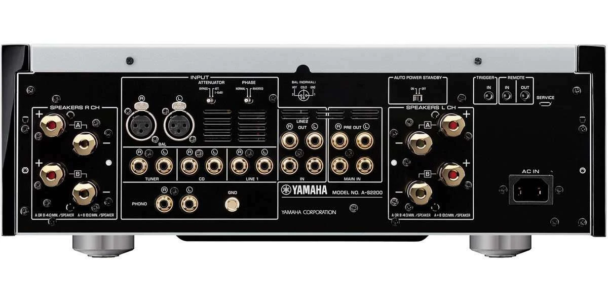 Le concept de mise à la terre mécanique adopté dans l’A-S2200 maximise la rigidité et réduit toute vibration indésirable, obtenant des basses expressives et rythmiques. Une plus grande rigidité est obtenue avec le grand transformateur de puissance, les condensateurs de bloc et les radiateurs directement boulonnés au châssis tandis que les pieds, avec des boulons directement soudés au châssis principal, fournissent un renforcement supplémentaire pour une rigidité absolue.