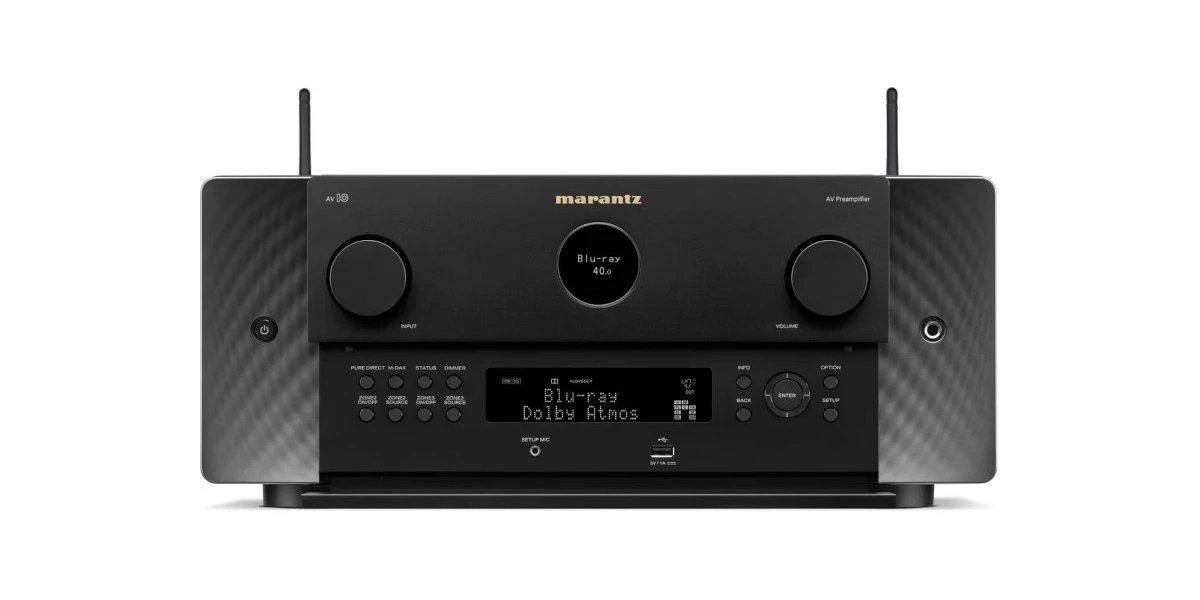 Expression moderne de principes de conception intemporels, l’ AV10 se caractérise par son hublot emblématique Marantz, son design symétrique, et par des repères visuels qui symbolisent la fameuse qualité Marantz.