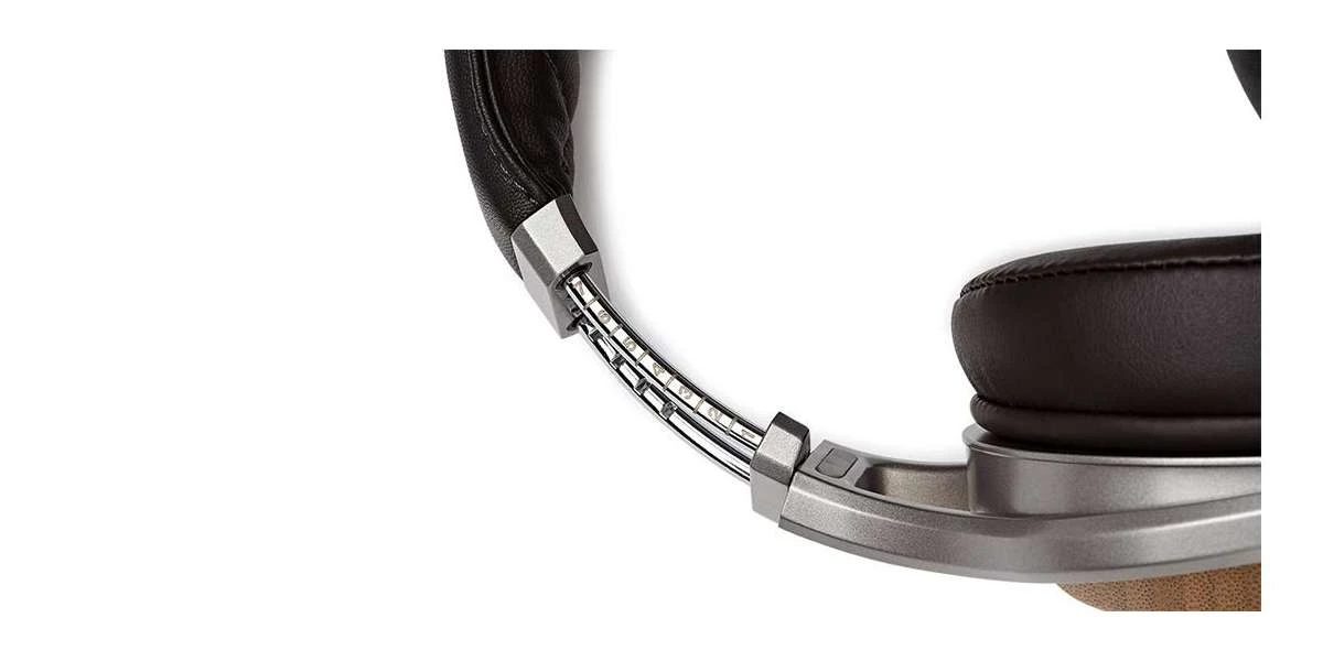 - Arceau léger en aluminium moulé sous pression avec une pression latérale minimale et une finition en cuir naturel pour un confort optimal, même lors de longues séances d’écoute.