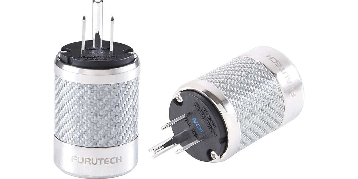 A multilayer nonmagnetic stainless steel and silver plated carbon fiber shell incorporates a special damping and insulating acetal copolymer. Furutech settled on stainless and silver plated carbon fiber for the outer housing after extensive listening sessions with Japanese industry figures and audiophiles.