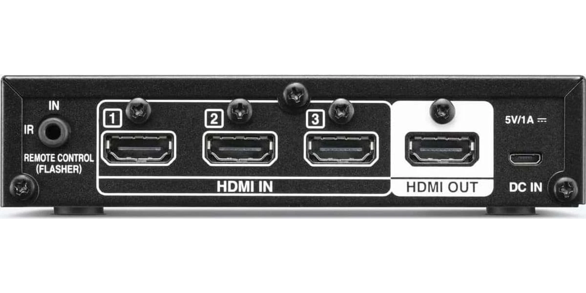 Un support de montage mural est inclus pour permettre le montage du commutateur HDMI sur un mur. Il dispose également d’une connectivité de répéteur de télécommande IR filaire au cas où l’AVS-3 et l’AVR se trouvent dans un système de rack ou derrière une armoire bloquant la réception IR.