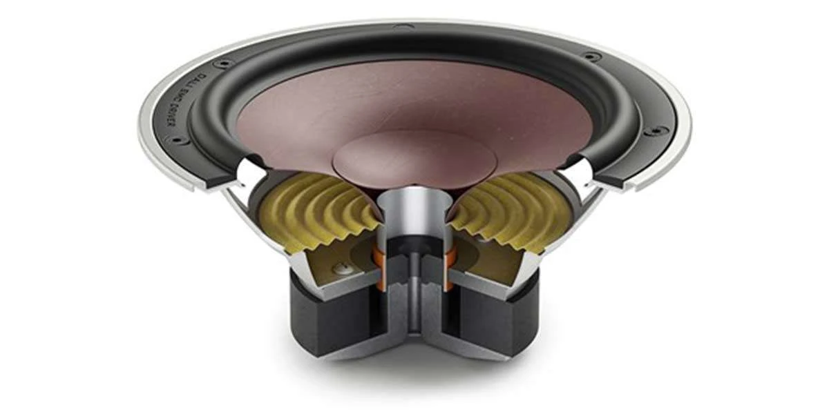 Le cœur ferrique de l´aimant des hauts parleurs qui équipent la gamme OBERON C est couronné par un notre système SMC breveté, minimisant les effets négatifs du fer. Le recours au SMC réduit grandement la distorsion mécanique, ce qui abaisse par conséquent la distorsion de troisième ordre. Les médiums retrouvent leur naturel, le moindre détail est restitué même à faible volume sonore, et le plaisir d´écoute s´en retrouve magnifié.
