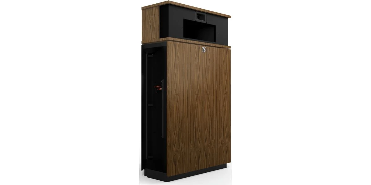 En 2005, la société a apporté des modifications fonctionnelles et esthétiques mineures à cette enceinte légendaire, notamment en éliminant la collerette encastrée, ou cale d’espacement, entre les coffrets inférieur et supérieur pour un design plus esthétique. Une fermeture de la paroi horizontale a été ajoutée pour améliorer la précision de réponse du pavillon en basse fréquence. Disponible avec une finition en placage de bois de frêne noir, noyer ou merisier, l’enceinte Klipschorn reflète un travail de fabrication de qualité supérieure qui ne se démodera jamais. Les enceintes de la gamme Heritage de Klipsch sont fabriquées sur commande, de façon artisanale aux États-Unis, dans notre atelier de fabrication à Hope dans l’Arkansas.