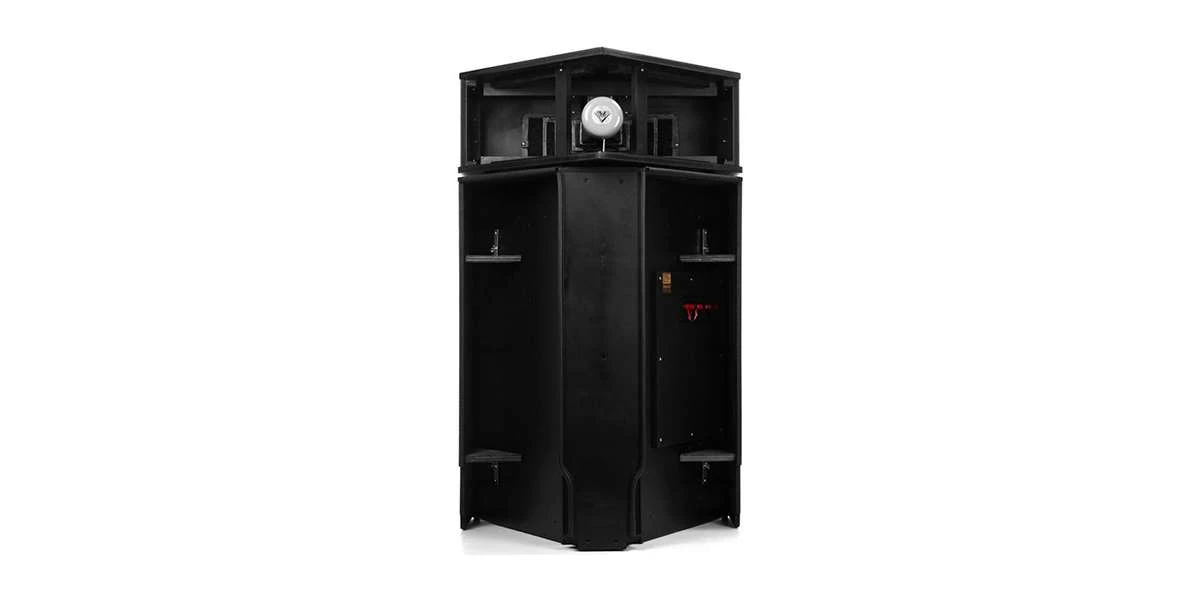 - Système trois voies large bande intégralement à pavillon avec un boomer de 15 pouces à pavillon replié breveté pour des basses fréquences puissantes
