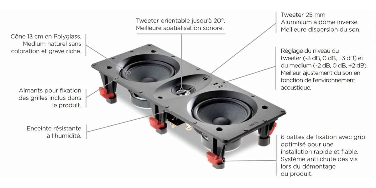 Cette enceinte LCR (gauche, centrale, droite) peut être utilisée à l’horizontal, en centrale pour le Home-Cinéma. Un switch 3 positions permet de définir la fonction gauche, centrale ou droite et de garantir un équilibre tonal identique au point d’écoute. Ce produit s’intègrera partout en toute discrétion, grâce à sa faible profondeur et à sa grille magnétique, sans cadre. Laissez-vous surprendre par sa technologie, son design et ses fonctionnalités pour un usage facile. Vous avez une solution évidente qui s’imposera par son efficacité à ce niveau de prix.