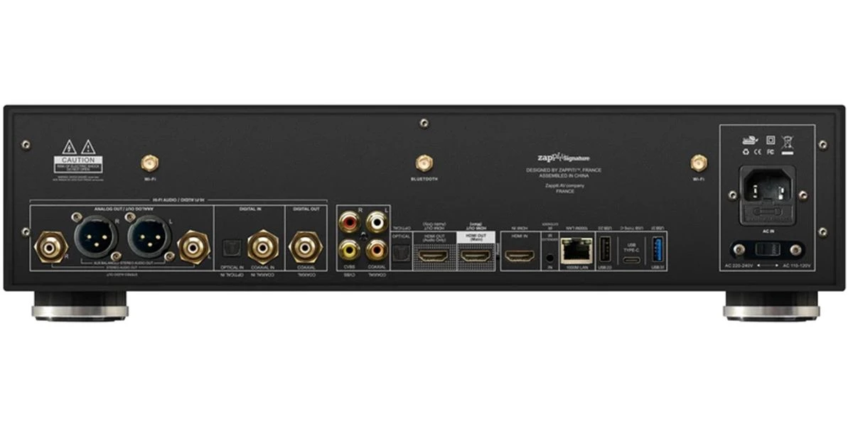 Le Zappiti Signature est livré avec une double baie pour disques durs internes capables d’héberger jusqu’à 40 To de films, de séries TV et de fichiers musicaux, une double sortie HDMI, un DAC premium 32-bit ESS ES9038 Pro, deux alimentations massives de type R-Core (une pour l’analogique et l’autre pour le numérique) et offre une qualité d’image et de son époustouflante afin de répondre aux exigences de passionnés de home cinéma les plus exigeants.