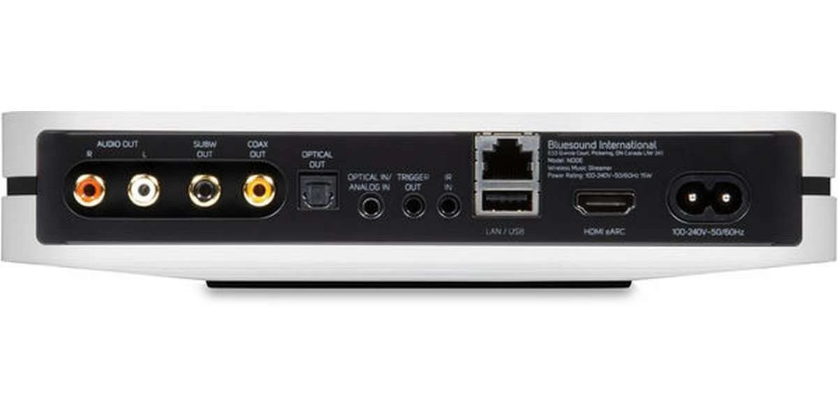Faites entrer la musique dans votre NODE à l’aide de l’eARC HDMI, du Wi-Fi ou de l’Ethernet, Apple AirPlay 2, de l’aptX HD Bluetooth ou de l’USB, pour écouter le contenu audio des services de streaming, de la télévision et de votre propre bibliothèque musicale. Écoutez votre musique sur votre système Hifi ou avec des écouteurs avec ou sans fil, en vous connectant aux prises RCA, TOSLINK optique, aptX HD Bluetooth, 3,5 mm, Apple ou d’autres lecteurs Bluesound ou BluOS.