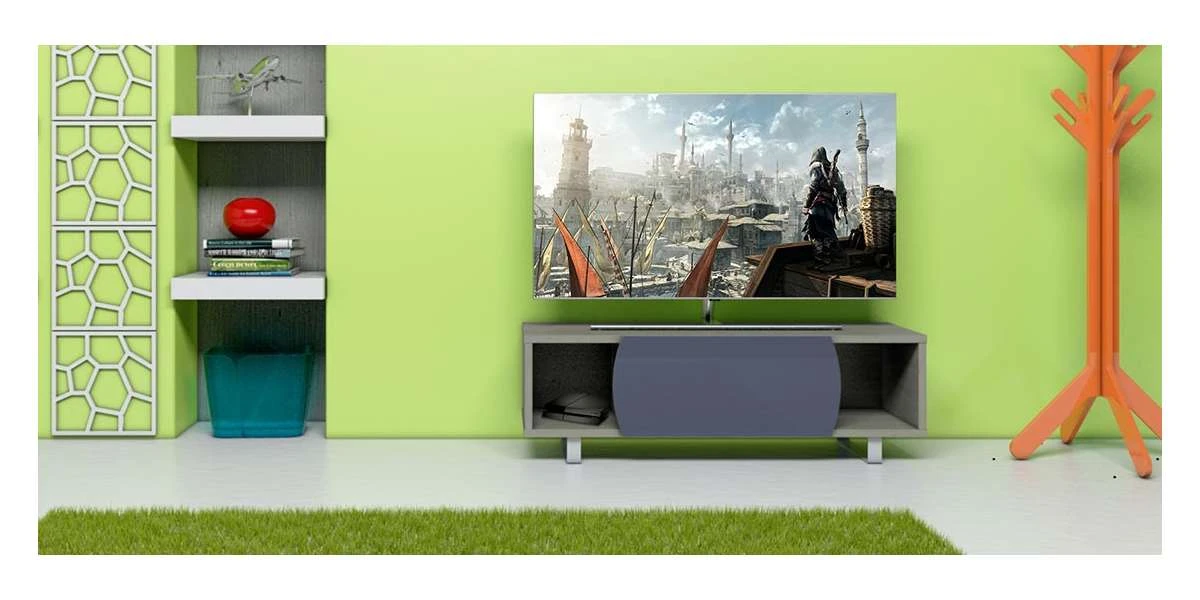 Meubles TV / Vidéo Kairos Easy Ke130 Corp En Chêne Gris, Verre Gris Foncé