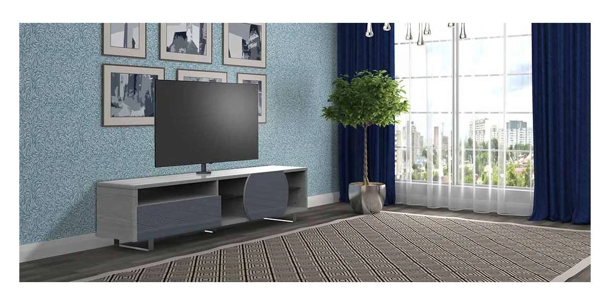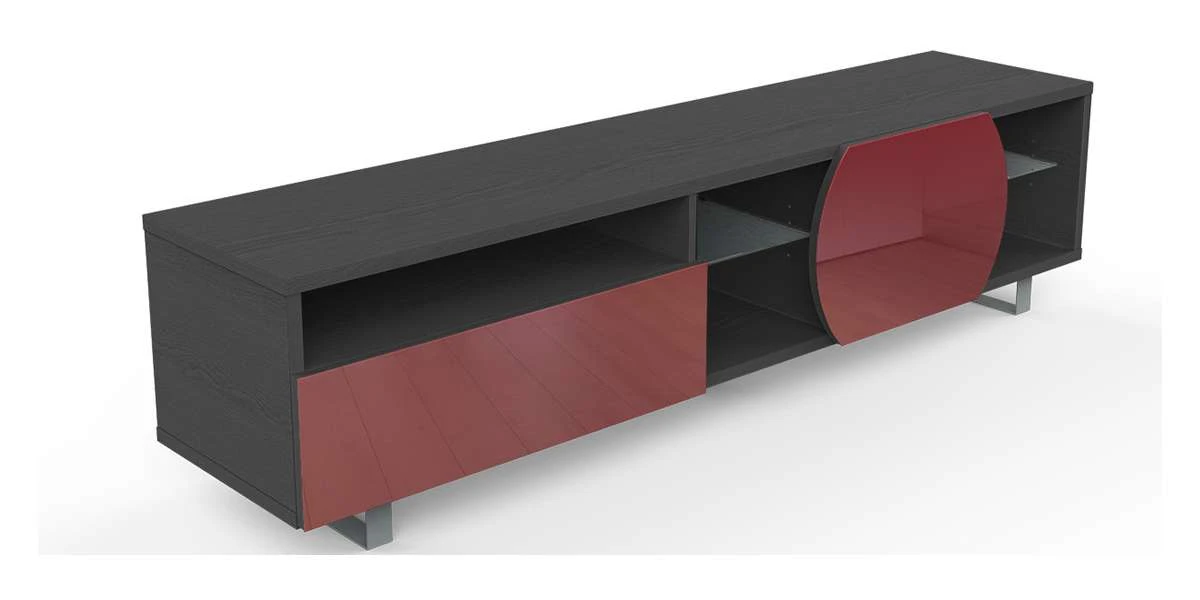 Meubles TV / Vidéo Kairos Game Kg195 Corp En Orme Foncé, Verre Rouge