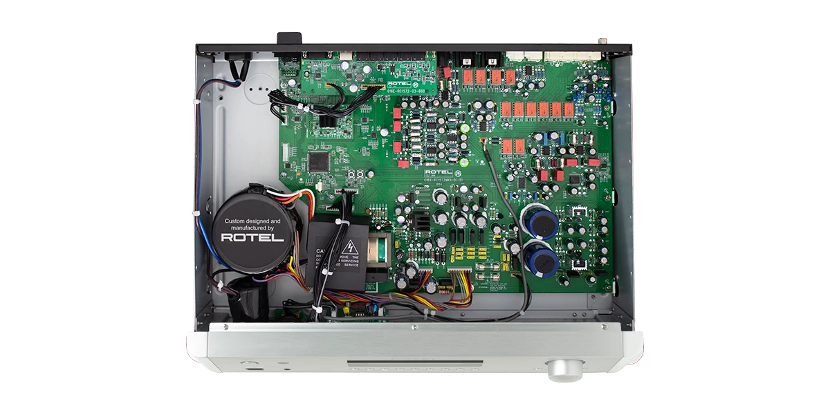 En tant que composant essentiel d’une chaine HiFi, l’ingénierie de précision du RC-1572MKII commence par l’alimentation électrique à très faible bruit de Rotel comprenant un large transformateur toroïdal interne. La conception du transformateur réduit les émissions rayonnantes parasite et alimente une banque de condensateurs à fentes, des condensateurs à faible ESR assurant un courant stable pour tous les circuits sensibles, réduisant le bruit et les distorsions avec un bruit de fond ultra faible.