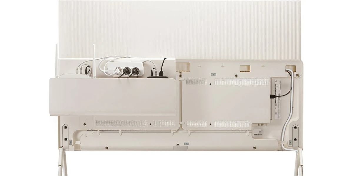 Le cadre du Posé adopte un beige discret et apaisant, la finition en tissu est aussi douce à l’ œil qu’au toucher. Ce TV harmonise et apporte une touche élégante qui se fond parfaitement avec votre intérieur.
