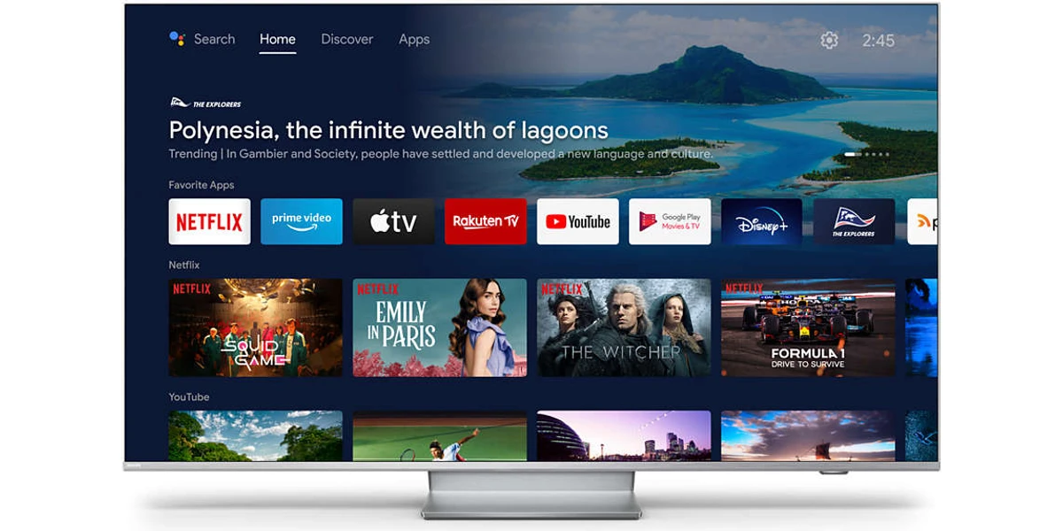 Votre téléviseur Philips Android vous permet d’accéder aux contenus de votre choix quand vous le souhaitez. Vous pouvez personnaliser l’écran d’accueil pour afficher vos applications préférées, ce qui facilite la diffusion des films et des émissions que vous aimez. Vous pouvez également reprendre là où vous vous êtes arrêté.